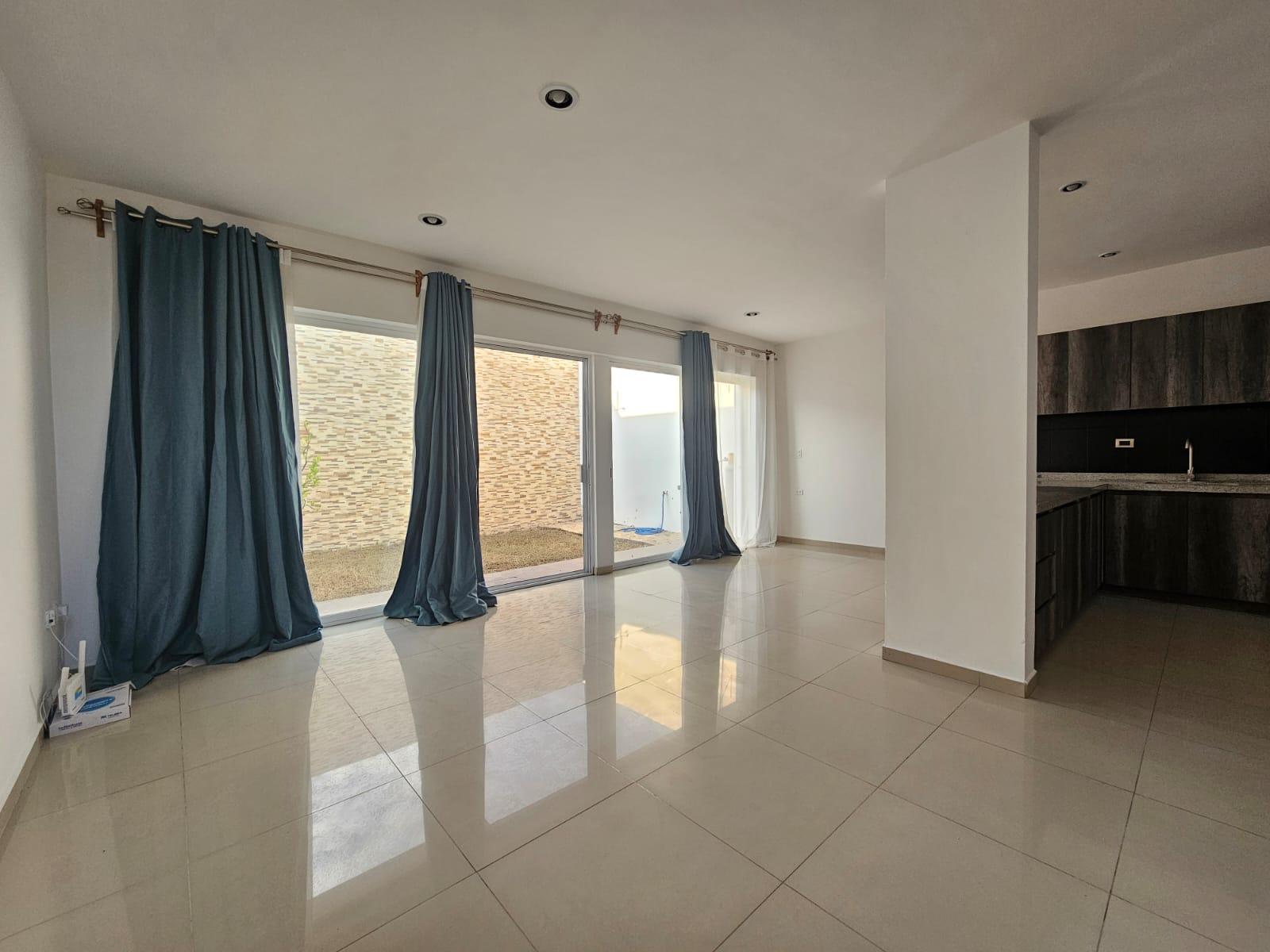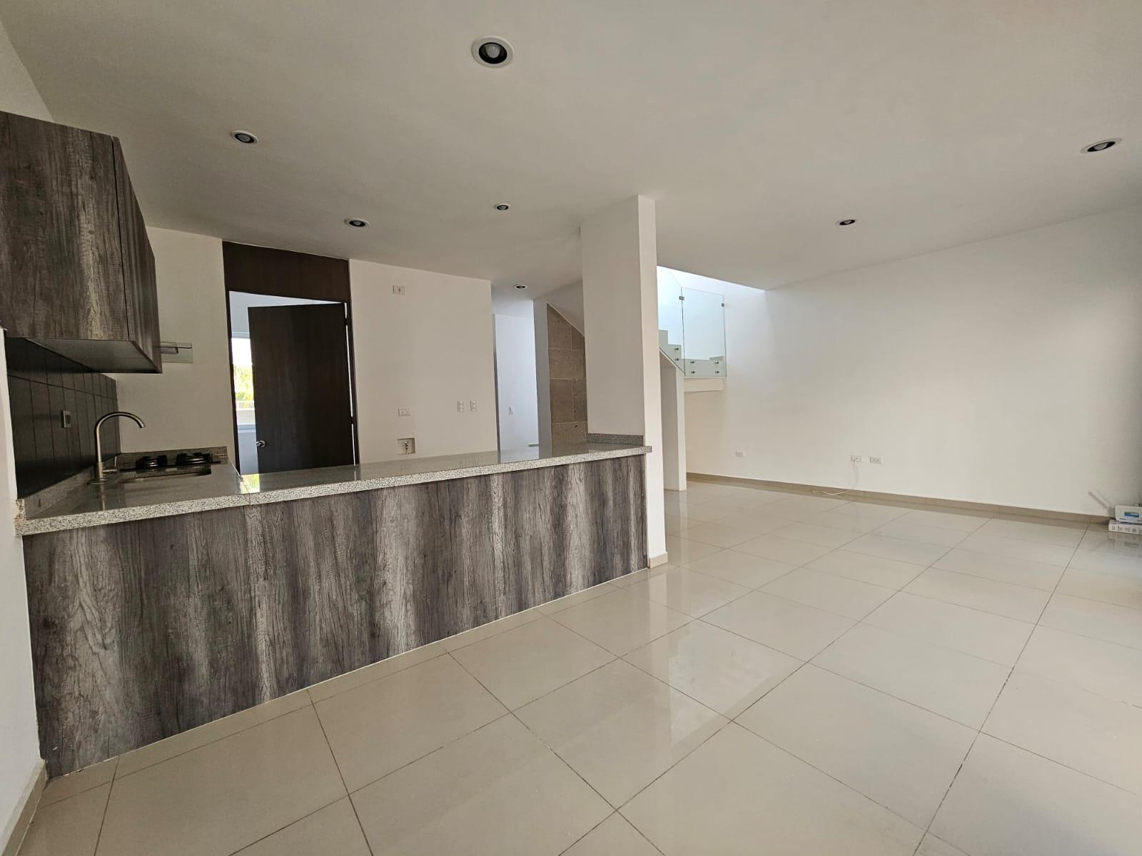 Cochera para 2 autos, sala. comedor, cocina equipada con barra desayunadora, terraza amplia, cuarto de lavado, medio baño, calentador de paso, cisterna.