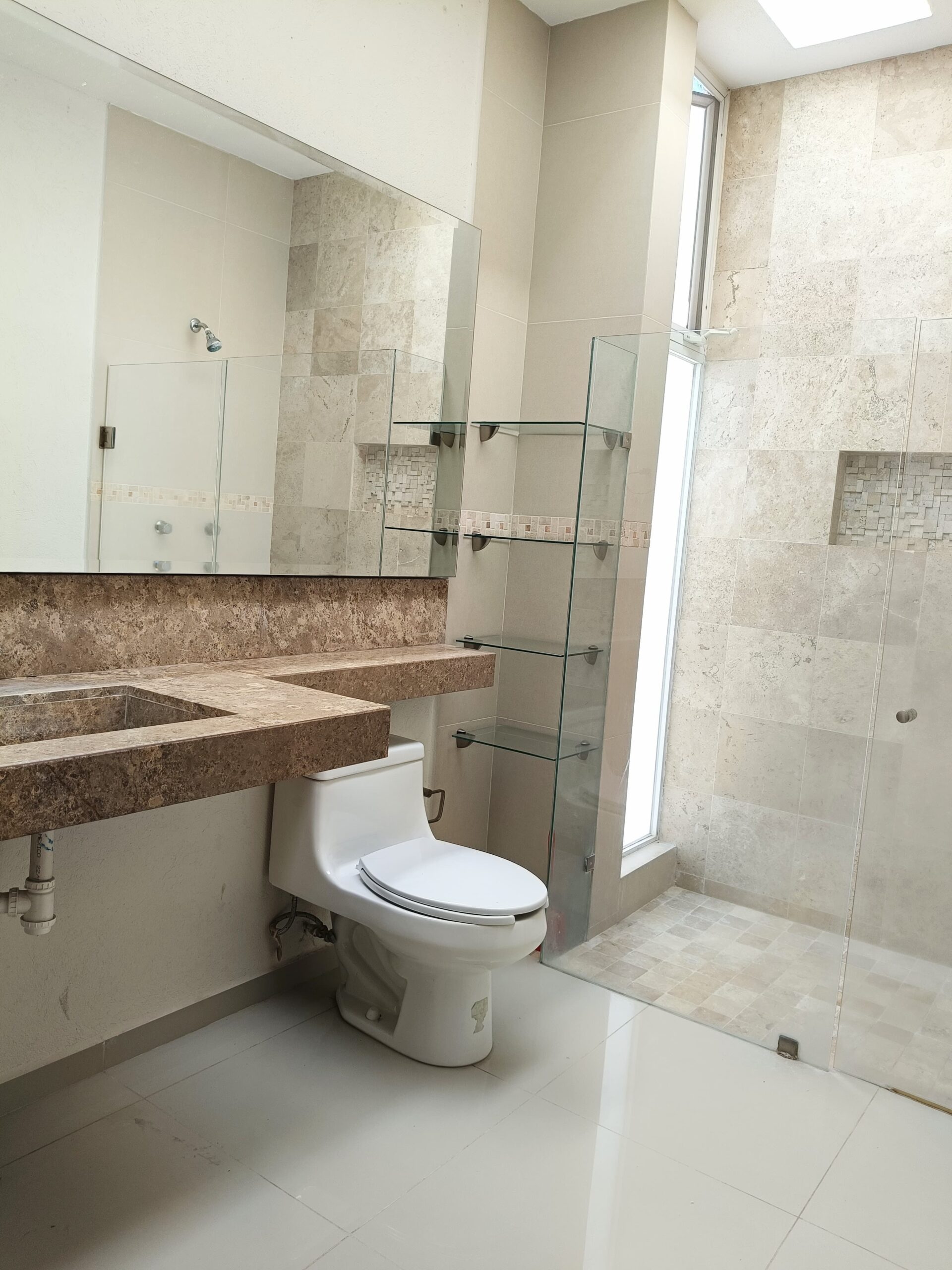 Habitación principal amplia con vestidor y baño completo con cancel en vidrio templado y minisplit, 2 habitaciones cada una con clóset y minisplit, baño completo con cancel en vidrio templado.