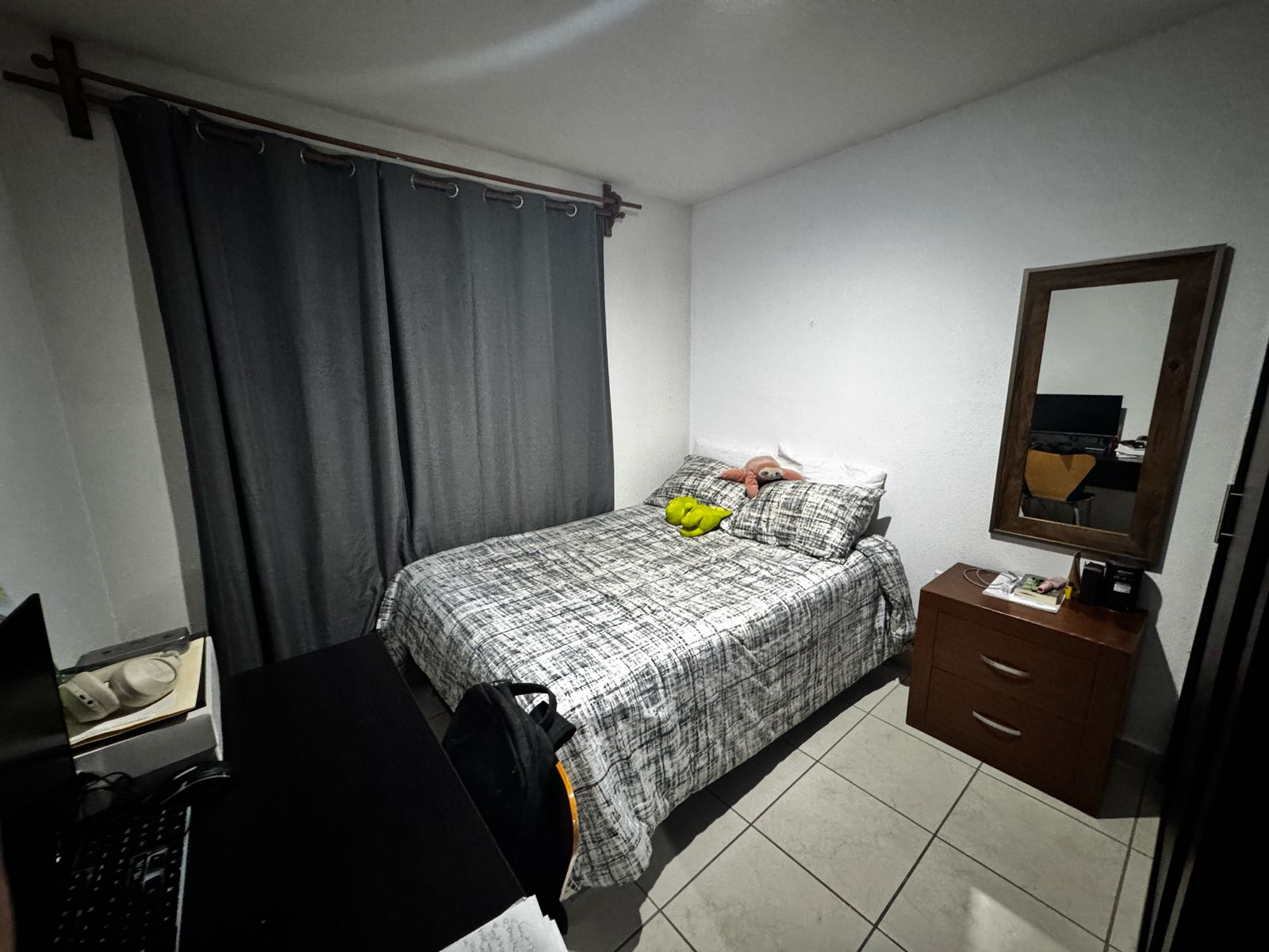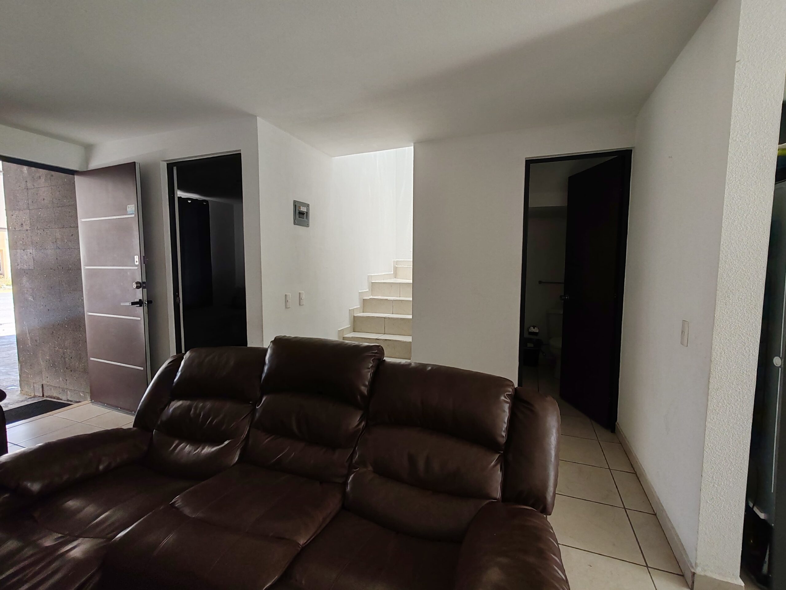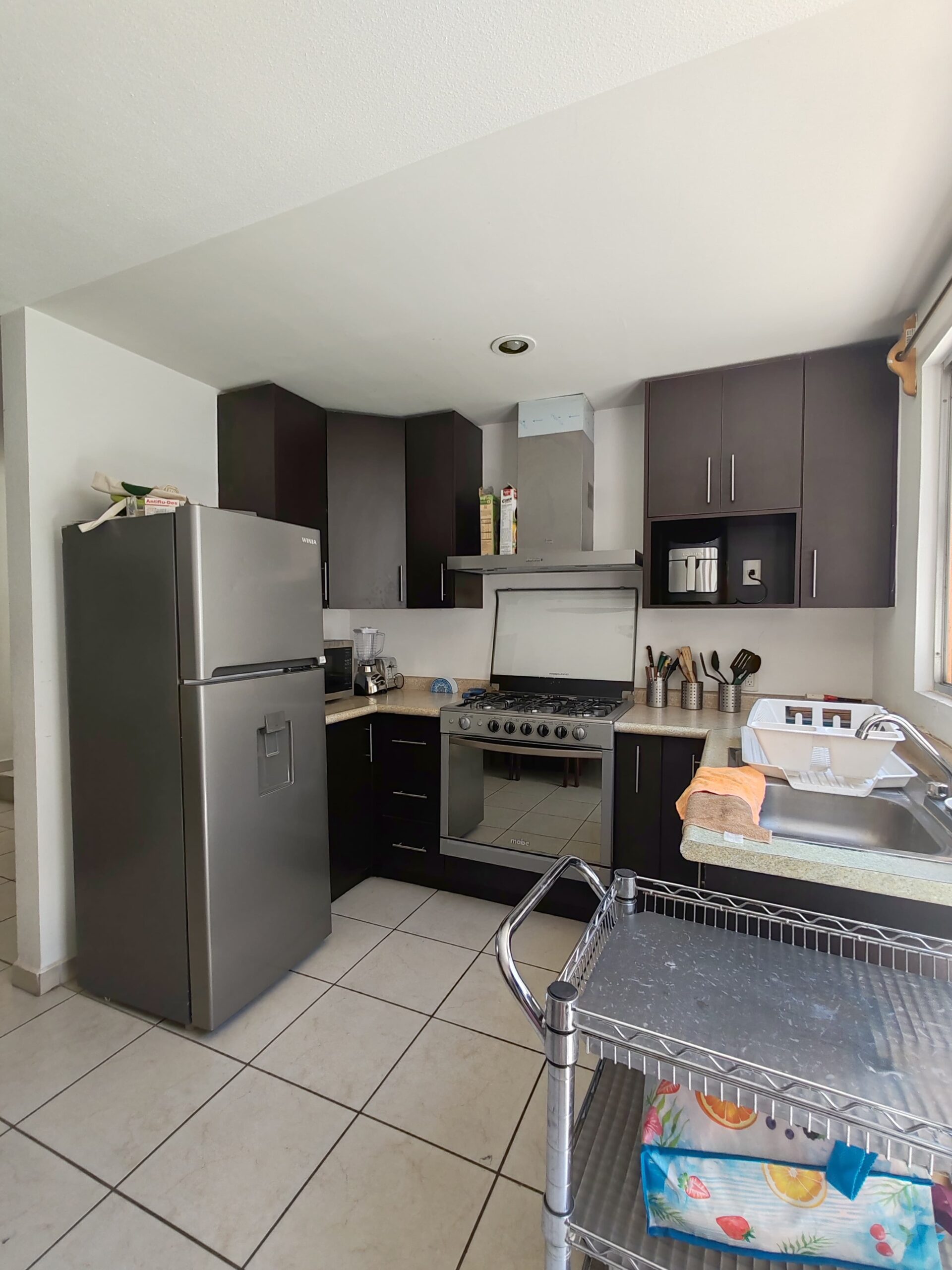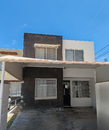 Cochera con estructura de velaria para 2 autos, sala, comedor, cocina equipada, habitación, baño completo, jardín, patio con área para lavado, calentador de paso.