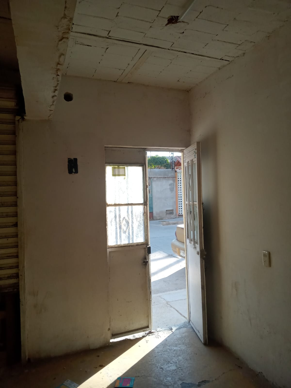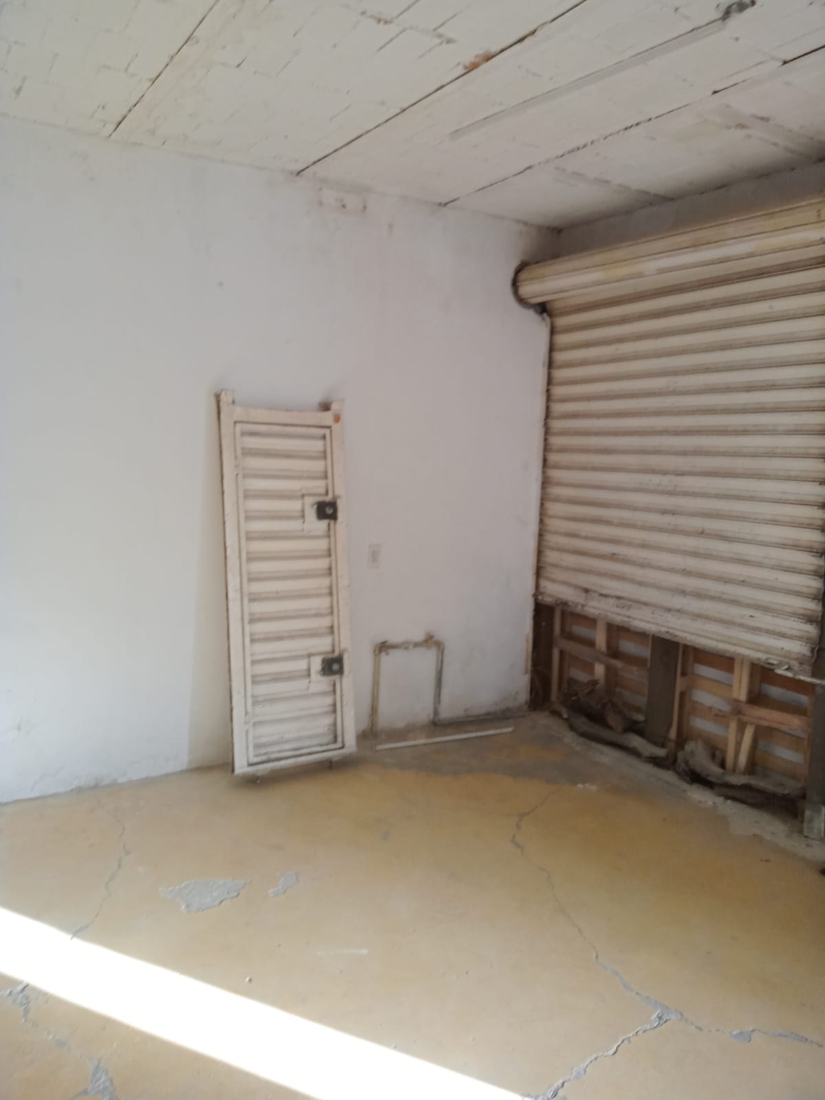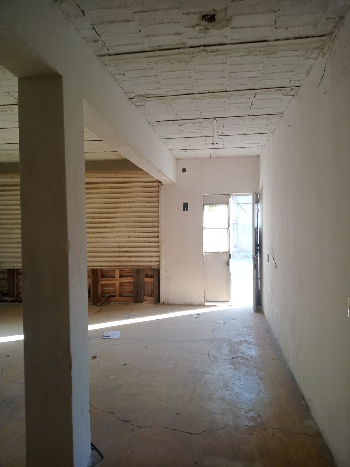 Área comercial con cortinas de acero en fachada, recibidor, área para cocina, 2 habitaciones, 1 baño completo, patio de servicio.