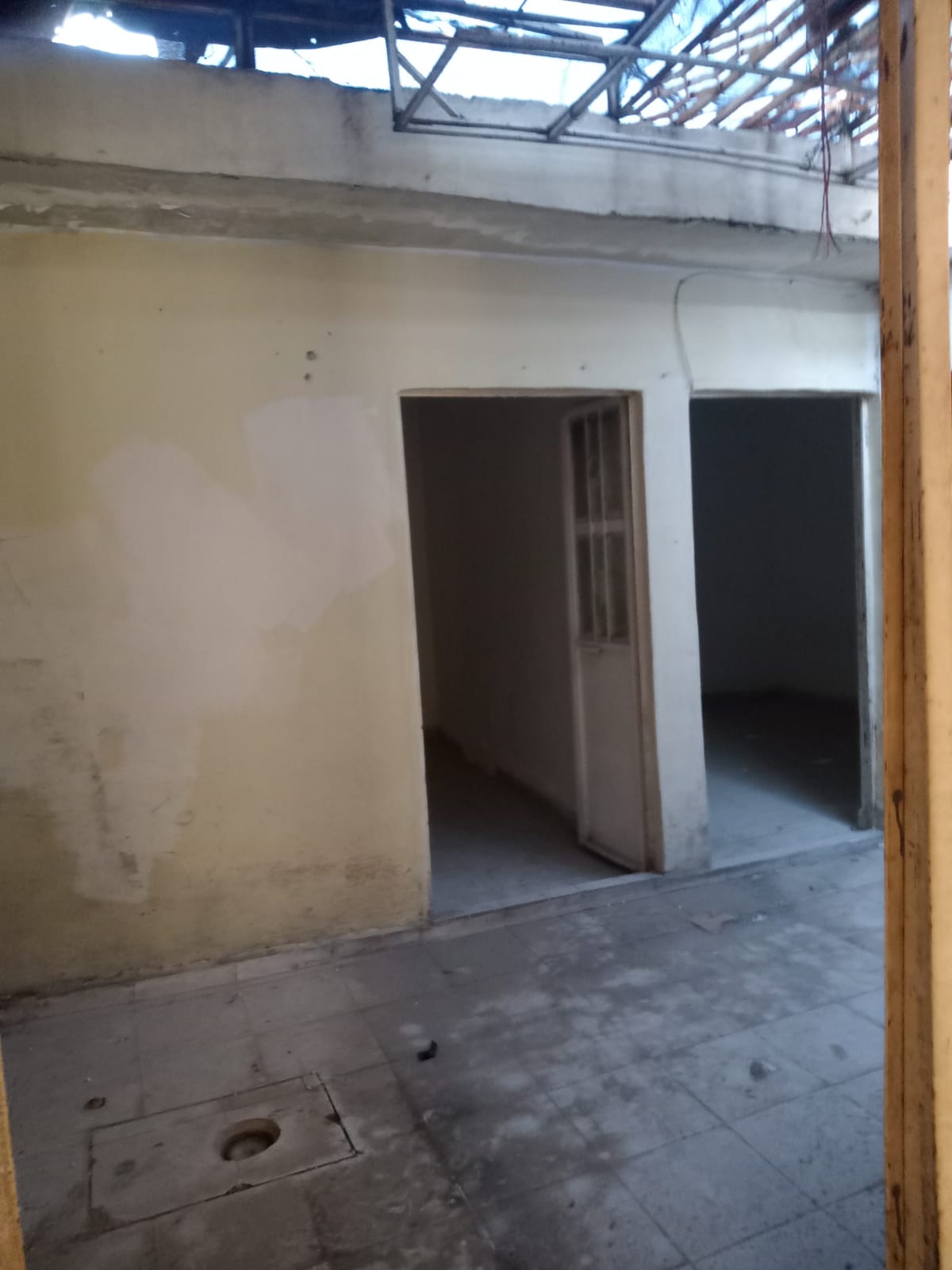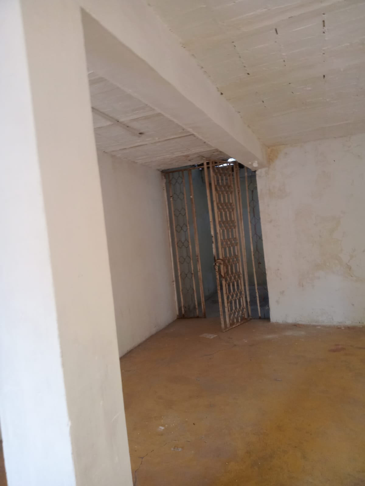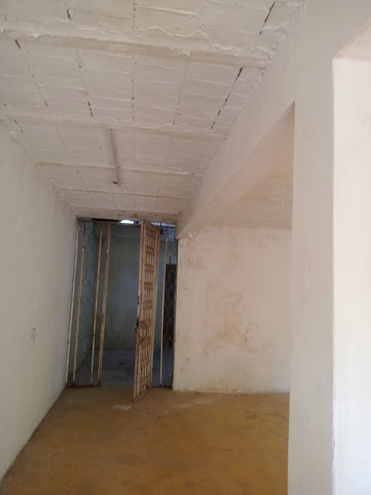 Área comercial con cortinas de acero en fachada, recibidor, área para cocina, 2 habitaciones, 1 baño completo, patio de servicio.