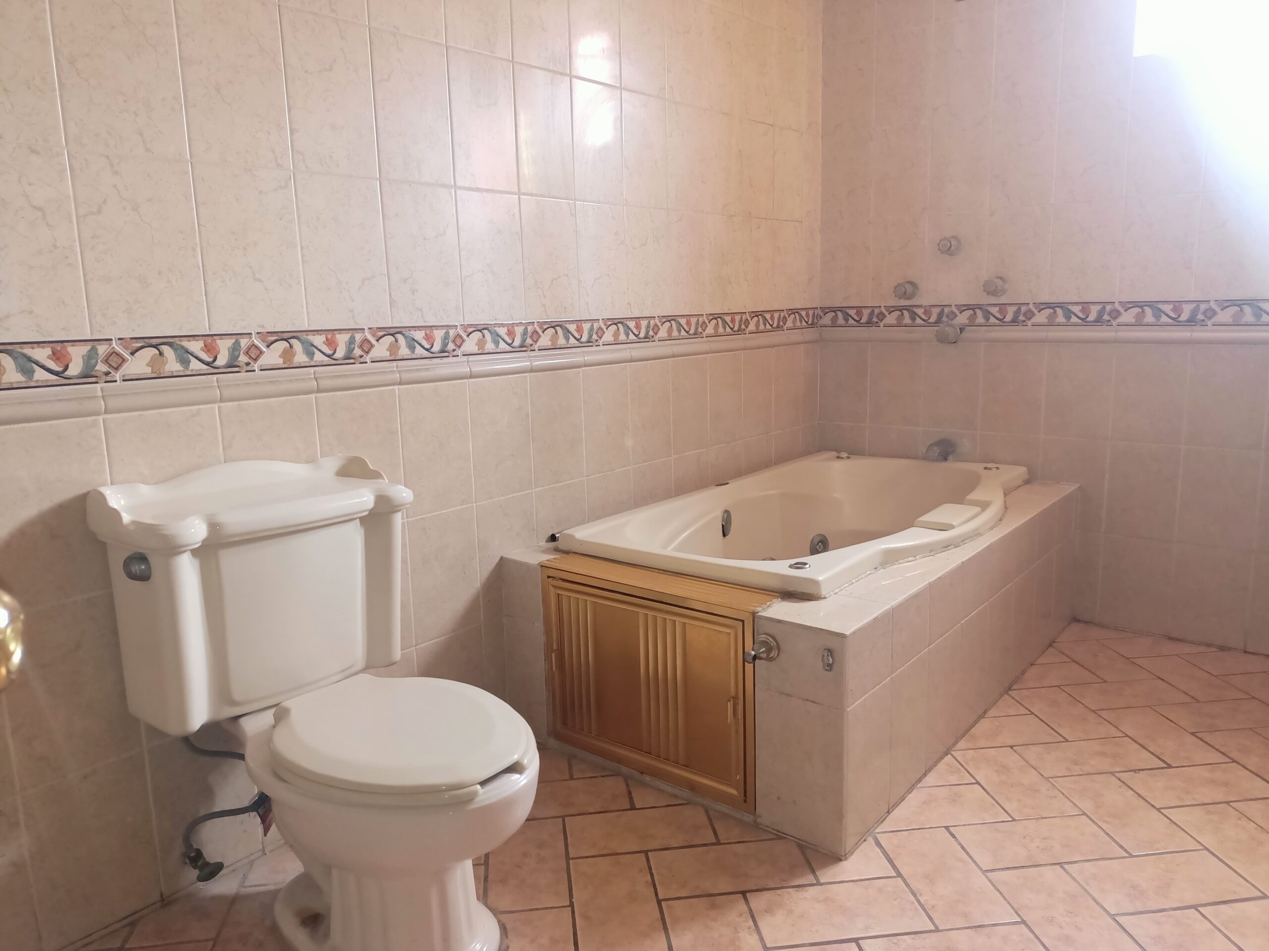 Habitación principal con clóset y vestidor, así como su baño completo con tina, 2 recámaras con clóset cada una, sala de televisión y baño completo.