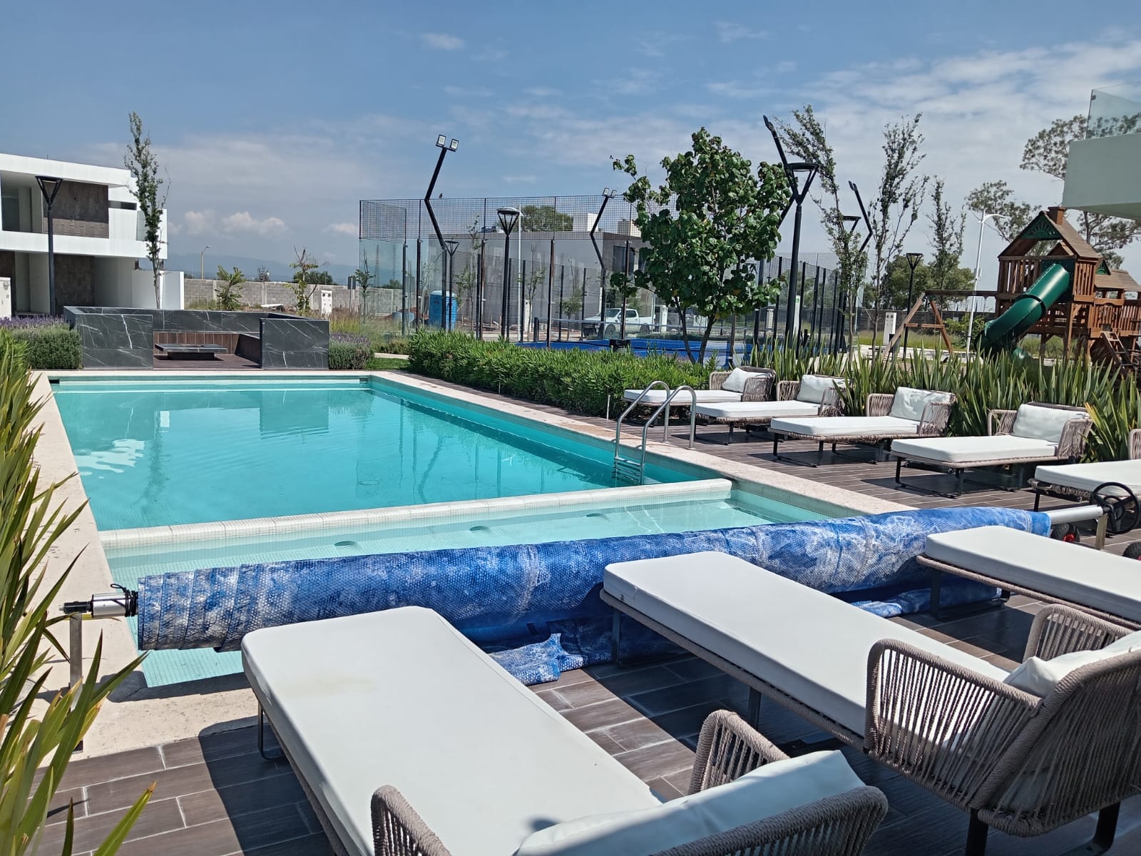 Acceso controlado, seguridad 24/7, alberca, juegos infantiles, cancha de padel, fogatero, trotapista, dog park, sanitarios, estacionamiento para visitas.